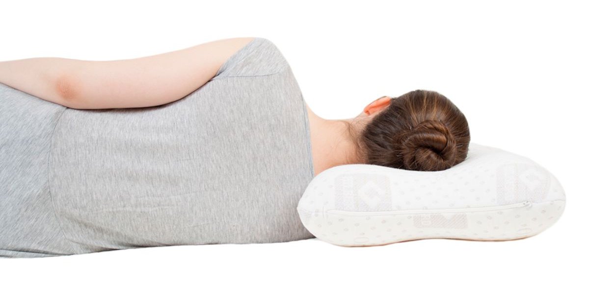 - - углубление посередине фиксирует голову в правильном положении, а также позволяет использовать подушку с обеих сторон: как с вырезом, так и без